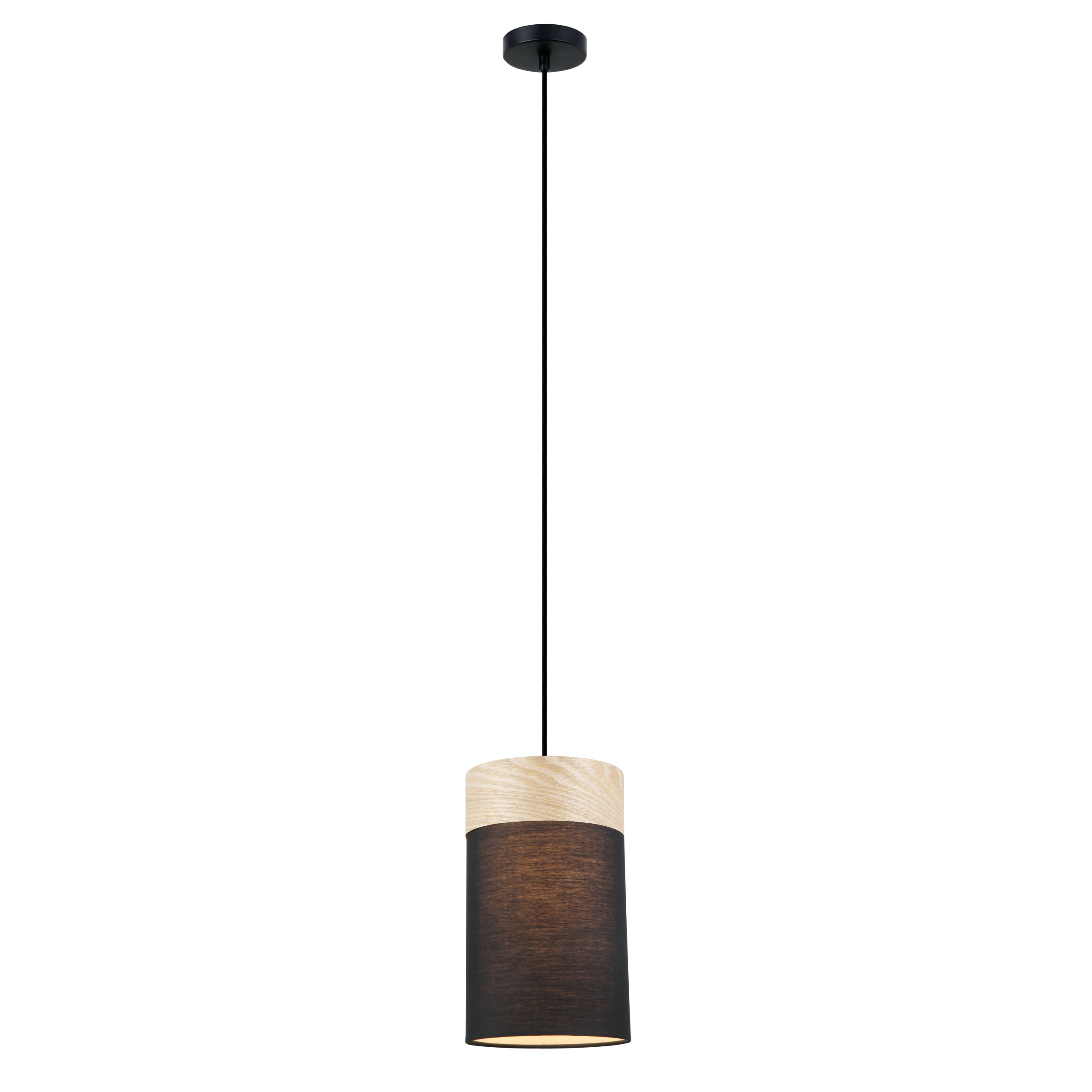 The Tambura series pendant lights are a classic drum pendant with cloth shade and natural blonde wood trim. Available in three sizes with either black or white fabric, this pendant is sure to complement your decor in either small or large rooms.